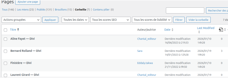 chercher s'il y a des pages dans corbeille.